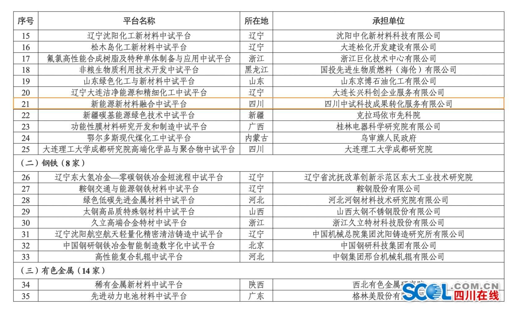 日前,工業(yè)和信息化部科技司公示了首批工業(yè)和信息化部重點培育中試平臺初步名單。其中,眉山市四川中試科技成果轉化服務有限公司的新能源新材料融合中試平臺在列。